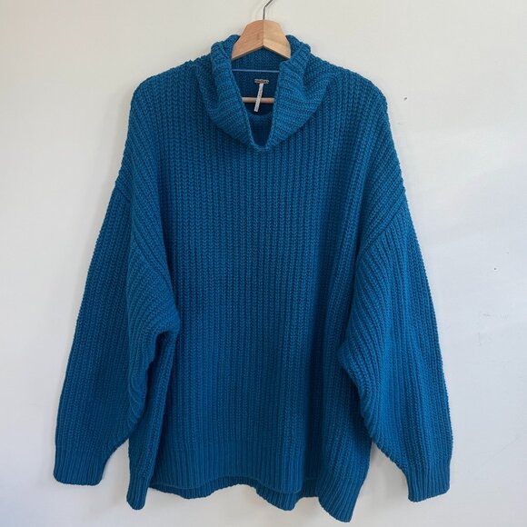 Free People Ocean Blue Oversized Chunky Swim Too Deep Turtleneck Sweater