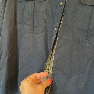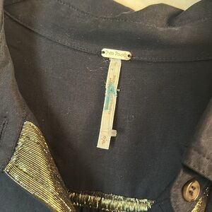 Free People Off Campus Button Down Shirt Navy Blue Gold Metallic Banding Small. Excellent condition Pit