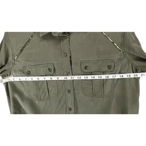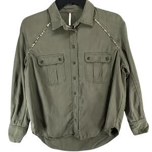 Free People Off Campus Shirt Womens XS Moss Green Tencel Metallic Boho Utility