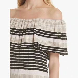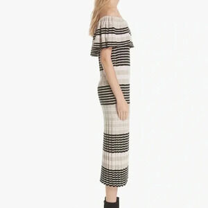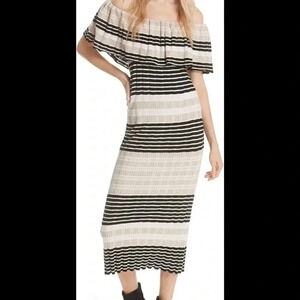 Free People Off Duty Knit Maxi Ivory Striped Off Shoulder Dress Size M