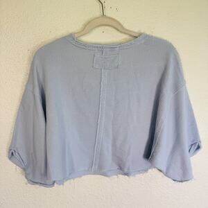 Free People Off My Mind Top Womens Small Oversize Cropped Waffle Knit Flowy S