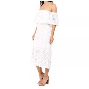 Free People Off Shoulder Dress Medium Most Romantic Ivory Cottagecore Prairie Modest Indie Midi Eyelet
