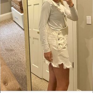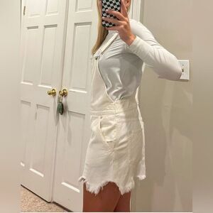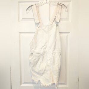 Free People Off White Overalls Mini Dress Size 2 Jumper Boho Pinafore Denim Rips
