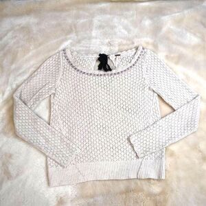 Free People Off White Wool Blend Open Knit Sweater Small Embellished Scoop Neck