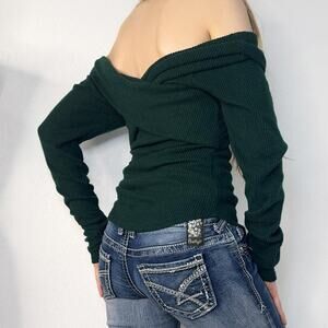 Off the Should Free People Top Green Marley Style Long Sleeve, Size Small, Light wash wear