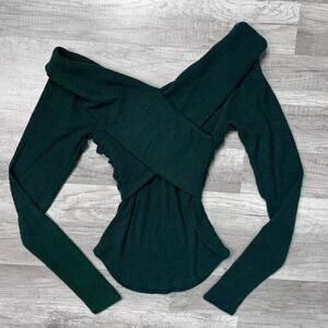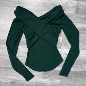 Free People Off the Should Top Green Marley Style Long Sleeve Size Small Fall