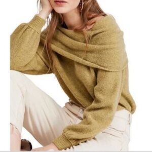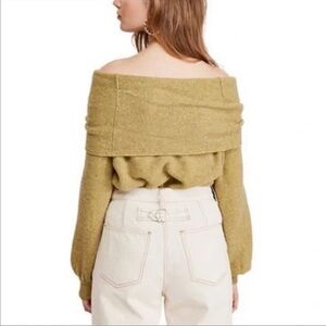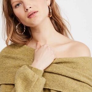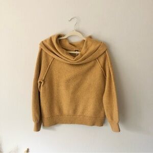 Cute Free People off the shoulder sweater made of wool blend. Yellowish orange tan. In great condition. Size xs.
