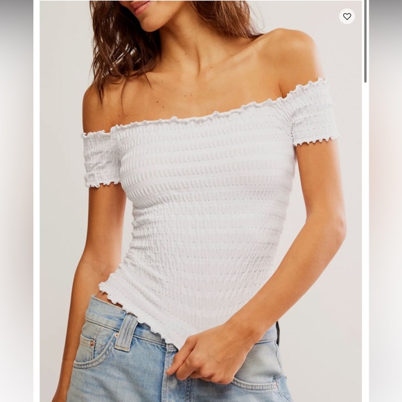 Elevate your style with this chic white off-shoulder ribbed top. Perfect for any occasion, this top offers a flattering fit and a trendy look.