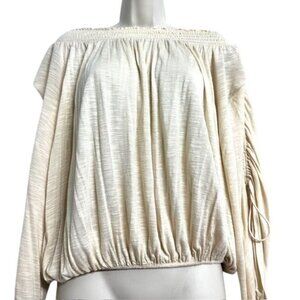 Free People Off-Shoulder Ruched Sleeve Bohemian Feminine Cream Open Back Top XS