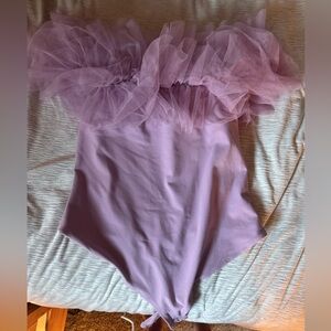 Free People Off-Shoulder Ruffled Tulle Bodysuit