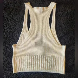 Free People Off-White Deep V-Neck Sleeveless Knit Top, see measurements