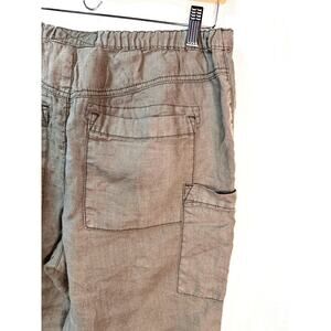 Stylish olive cropped pants. Features a drawstring waist and multiple pockets. Perfect for casual wear.