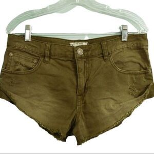 Free People Olive Green Cut Off Jean Shorts