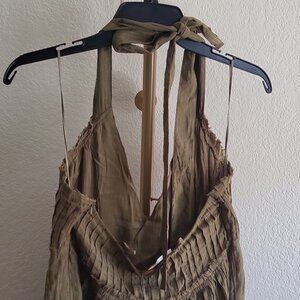 Free People Olive Green Frankie Pintuck Maxi Dress SZ S NWT
