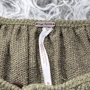 Free People Olive Green Quarter Button-Up Peasant Sleeve Women's Top
