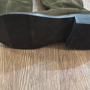 Stylish olive green suede boots. Perfect for any casual outfit.