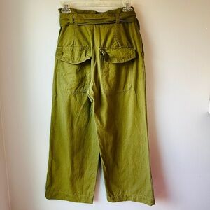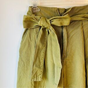 Free People One olive green 100% cotton wide leg paperbag crop pants with notch waistband and wide waist tie. Functional side pockets and back patch pockets. Cute summer pants with birks!