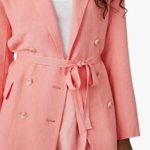 Defined shoulders and a waist tie detail balance out the drapey and oversized fit of this linen-blend blazer.