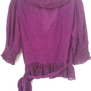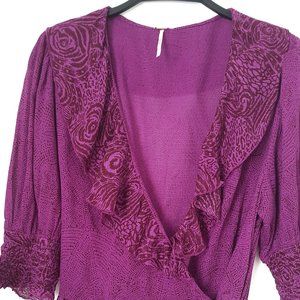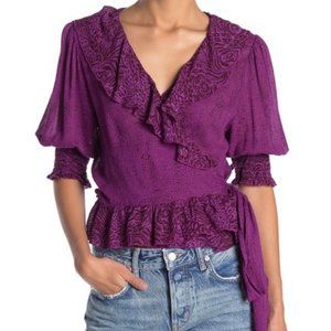 Free People Olivia Printed Purple Puff Sleeve Wrap Top