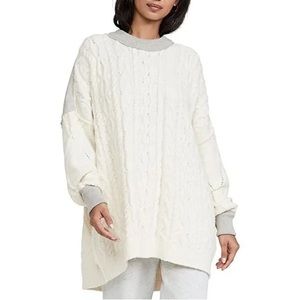Free People Olympia Color Block Cream Knit Oversized Sweater