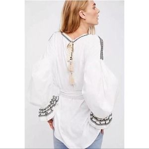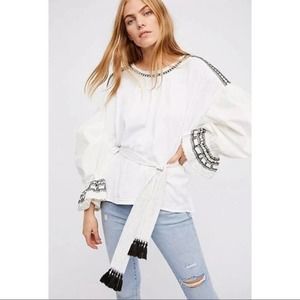 Free People On Holiday Embroidered Tunic Top Black Tribal Tassel Oversized Small