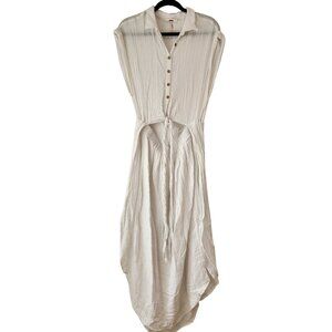 Free People On My Way Midi Dress White Gauze Muslin Beachy Women's L
