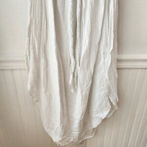 This Free People dress is absolutely adorable and perfect for Spring and Summer! It features a gauzy muslin material, high slits, and cut-out. Perfect as a flowy dress or cover-up.