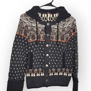 So cute and cozy, this knit hoodie features the perfect pattern for the season.