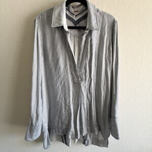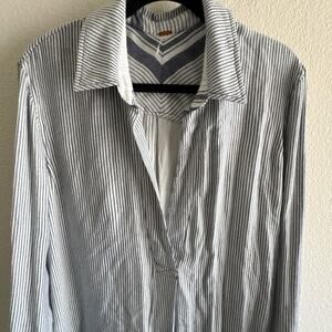 Free People On The Road Blue White Striped Popover Tunic Top Size Large