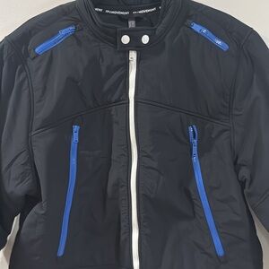 Moto-inspired style meets next-level comfort in this warm, fleece jacket with a water-resistant nylon shell for added weather protection on your to-from commute.