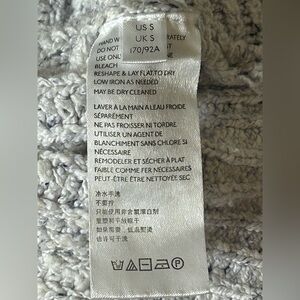 FP pullover sweater in excellent condition! Light blue with dark blue speckle/mottle colorway. Drop shoulder gives added comfort and relaxed silhouette. Chunky cable knit in a cropped cut. Does have stretch for added comfort as well. See flat lay measurements and extra details below