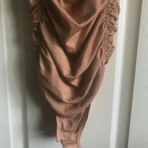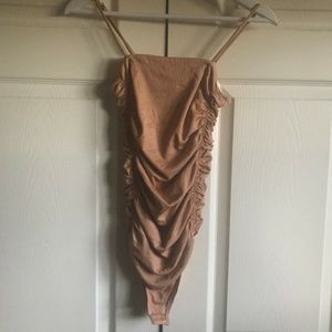 Beautiful Free People On Your Side Shirred Beige Stretch Body