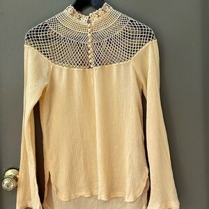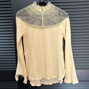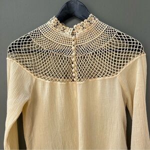 Free People “On the Island” Cream Yellow Crocheted High Neck Top, Size Small