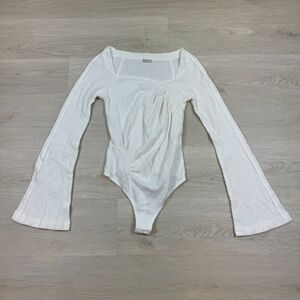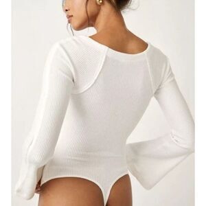 Free People On A Cloud Long Sleeve Bodysuit Womens Medium White Bell Sleeve