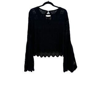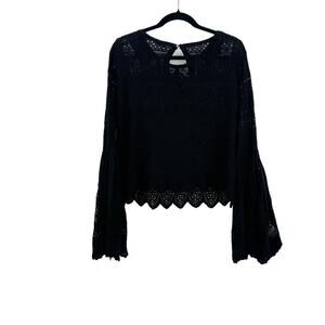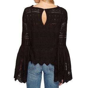 Free People Once Upon A Time Lace Bell Sleeves Top In Black Size S NWOT