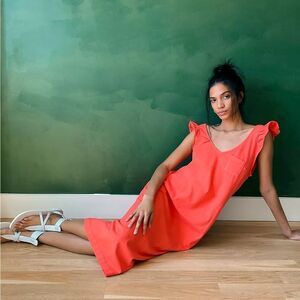 Free People Beach Once Upon A Sea midi dress in Electric Strawberries (coral pink color with orangey undertones). Size XS, in excellent condition. Sold out style.
