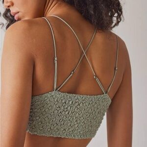 Free People One Adella Bra Longline Bralette Crochet Strappy Sage Green size Medium. NWT New With Tags, never worn. gorgeous color, hard to find.