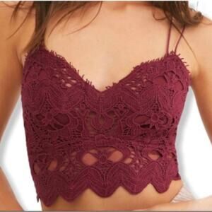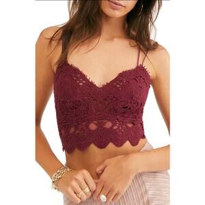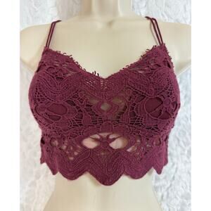 Free People One Adella Crochet Lace Bralette Boho Festival Burgundy Dark Red S**