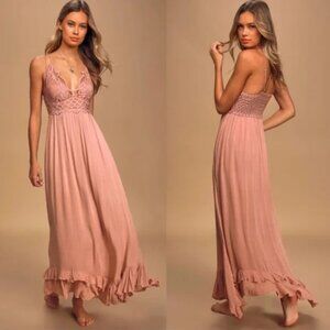 Free People One Adella Lace Slip Maxi Dress Rose Pink Womens Size Small