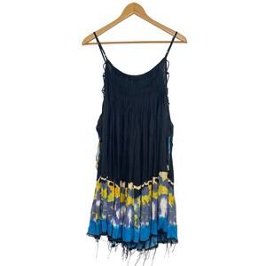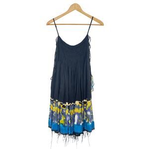 Free People One Black Imperial Palm Pintuck Printed Boho Dress Size S Festival Boho Beach Cover Up Hippie Lace Up. Measurements are approximate.