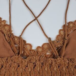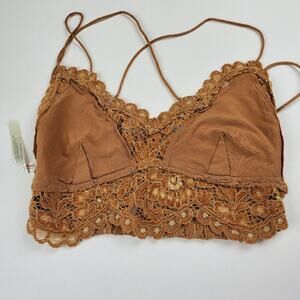 Free People One Celine Caramel Velvet Floral Lace Bralette Top Crop Tank Size XS