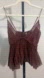 Chic chocolate lace camisole with delicate straps. Perfect for layering or wearing alone.