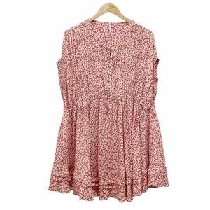 Free People One Fine Day Red Floral Print Flowy Oversized Mini Dress Size Small