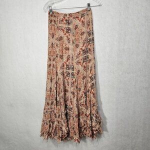 Free People One Floral Crepe Tiered Fringe High Waisted Maxi Skirt XS