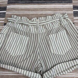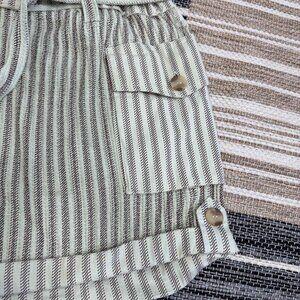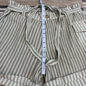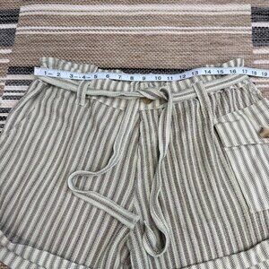 Free People One Harriet Striped Shorts Pockets Relaxed Fit Green Brown Sz Large