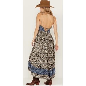 Free People One I Love Maxi Dress Denim Blue Floral Ruffle Smock Prairie Boho
