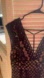 Elegant black lace mini dress. Features intricate patterns. Sleeveless with a deep V-neck.