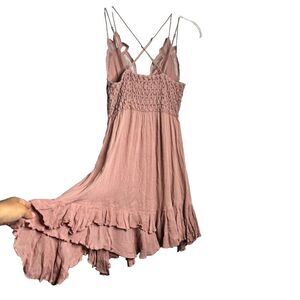 Free People One Movement Rose Pink Adella Lace Ruffle Tiered Slip Dress SMall
