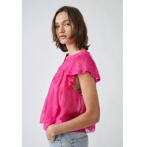 Free People One Padma Top Magentiful V Neck Flutter Sleeve Blouse Sz M NWT