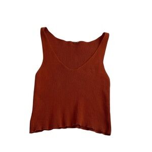 Free People One Ribbed Knit Tank Top Sz S Burnt Orange V-Neck Crop Tank Boho